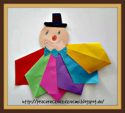 Ten tutaj powstał z sześciu dużych, kolorowych kwadratów do origami, które najpierw zostały złożone na połowę, tak aby powstał trójkąt, rozłożone, a następnie złożone do środkowej linii zgięcia i sklejone jak na zdjęciu.
